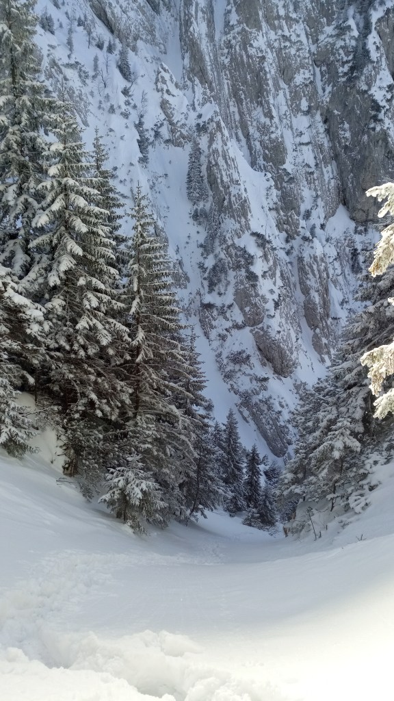 Zapada multa, fara urme, ger, vantul de creasta, una peste alta a fost de tras: urcare pe Padina Sindileriei – Varfu Turnu – coborare pe Padina Hotarului.