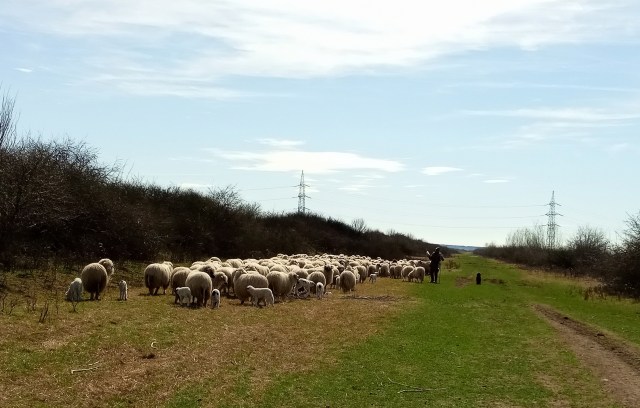 Am mers pe partea dreaptă cu calea ferată în stânga. Devine deja tradiție ca la fiecare tură sa dăm peste o turmă de animale. Săptămâna trecută au fost vaci și o capră, săptămâna asta oi. Am trecut pe jos pe lângă ele pentru a fi siguri că cei doi câini vor sta liniștiți.
