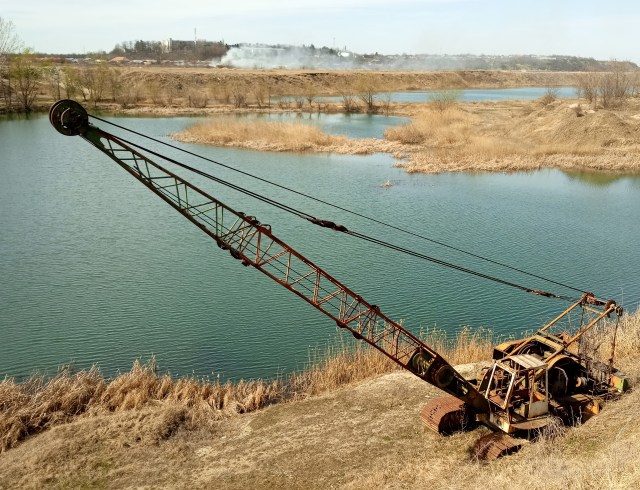 Am tot făcut pauze să admirăm peisajul, să facem poze, să ne minunăm de o macara părăsită pe malul apei.