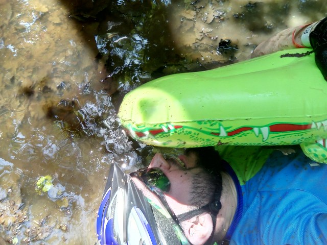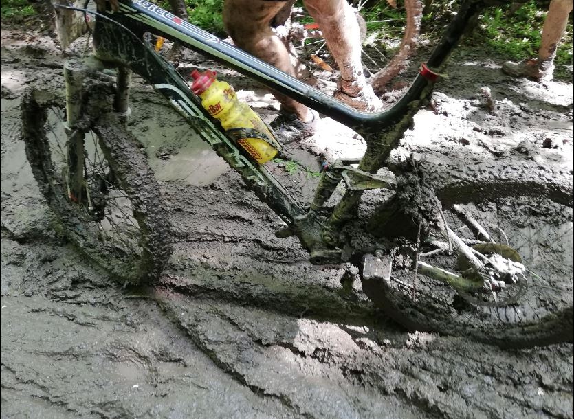 La un moment dat, mergând pe mijloc prin noroiul de vreo 30 de cm, l-am stropit pe cel din fața mea, care s-a întors “revoltat” să îmi spună că îl murdăresc. Mi-am cerut scuze fără să mă prind evident că glumește, toți având noroi până după urechi. Am râs și am mers mai departe. După ceva vreme am început să strig “Loc, vin tare pe stânga”, câțiva au mușcat și s-au întors curioși să vadă ce superman poate pedala pe acolo. Ce mi-a mai plăcut pe bucata asta a fost zgomotul pe care îl scotea noroiul când îl aruncai pe trunchiul copacilor, era un “pleosc” care mai spărgea monotonia când curatai cauciucurile.