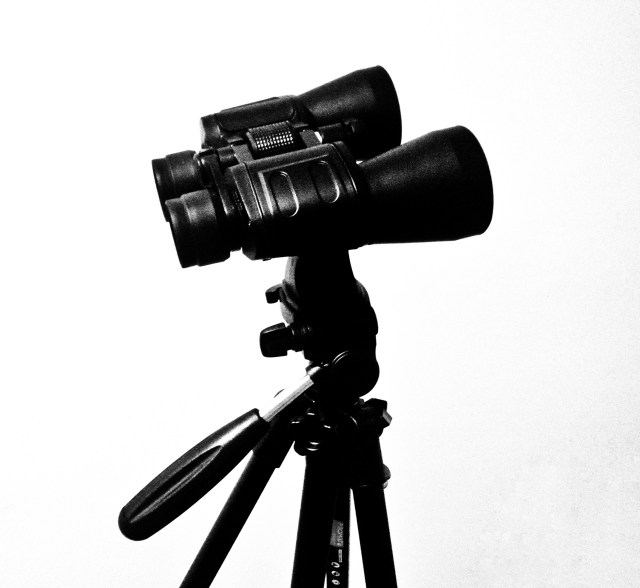 Când te uiți prin binoclu iți tremură mâinile, deci ai nevoie de stabilizare. Fie sprijinit cu brațele pe ceva, fie un trepied si un adaptor pentru fixarea binoclului pe trepied. Sau stabilizezi impingând cu degetele mari in obraji.