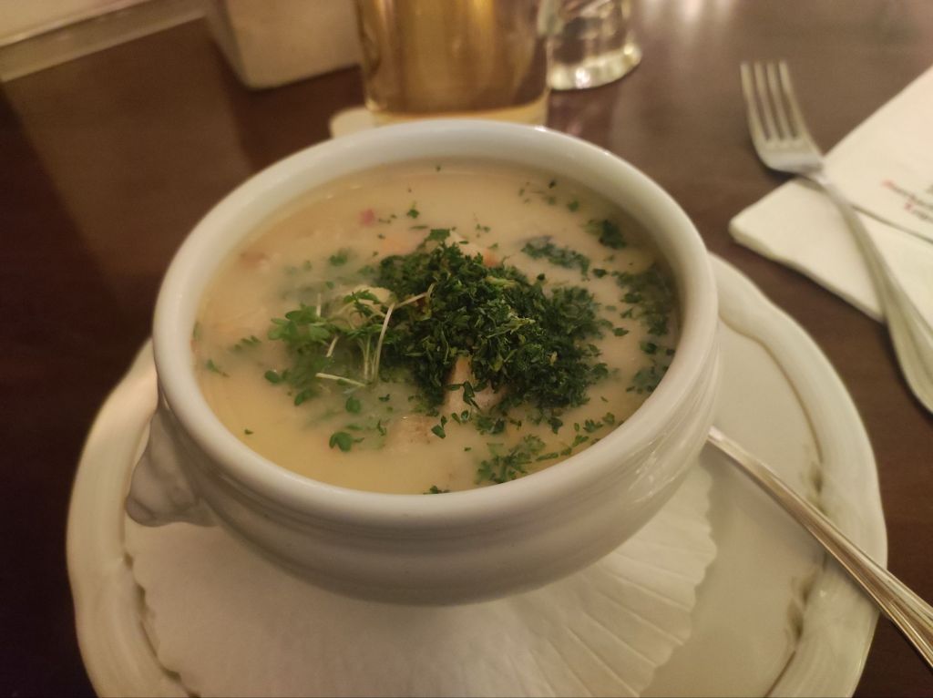 În ambele restaurante am încercat și supa crema de cartofi saxonă, delicioasă. Dar parcă mai bună la Grosse Keller.