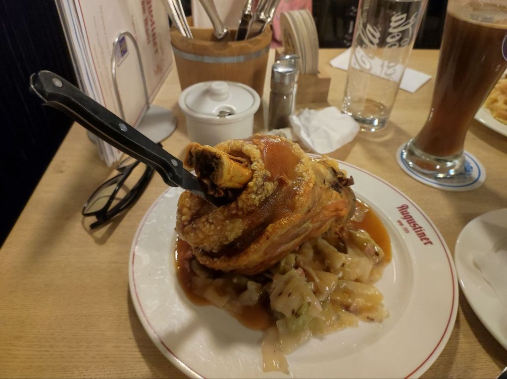 * Augustiner am Markt: Un restaurant tradițional german situat chiar în piața centrală. Am savurat un delicios ciolan cu crusta, bratwurst, varza călită specifică și un gulaș de vită excelent. Toate au fost acompaniate de Augustiner la draught, într-un decor autentic, plin de farmec.